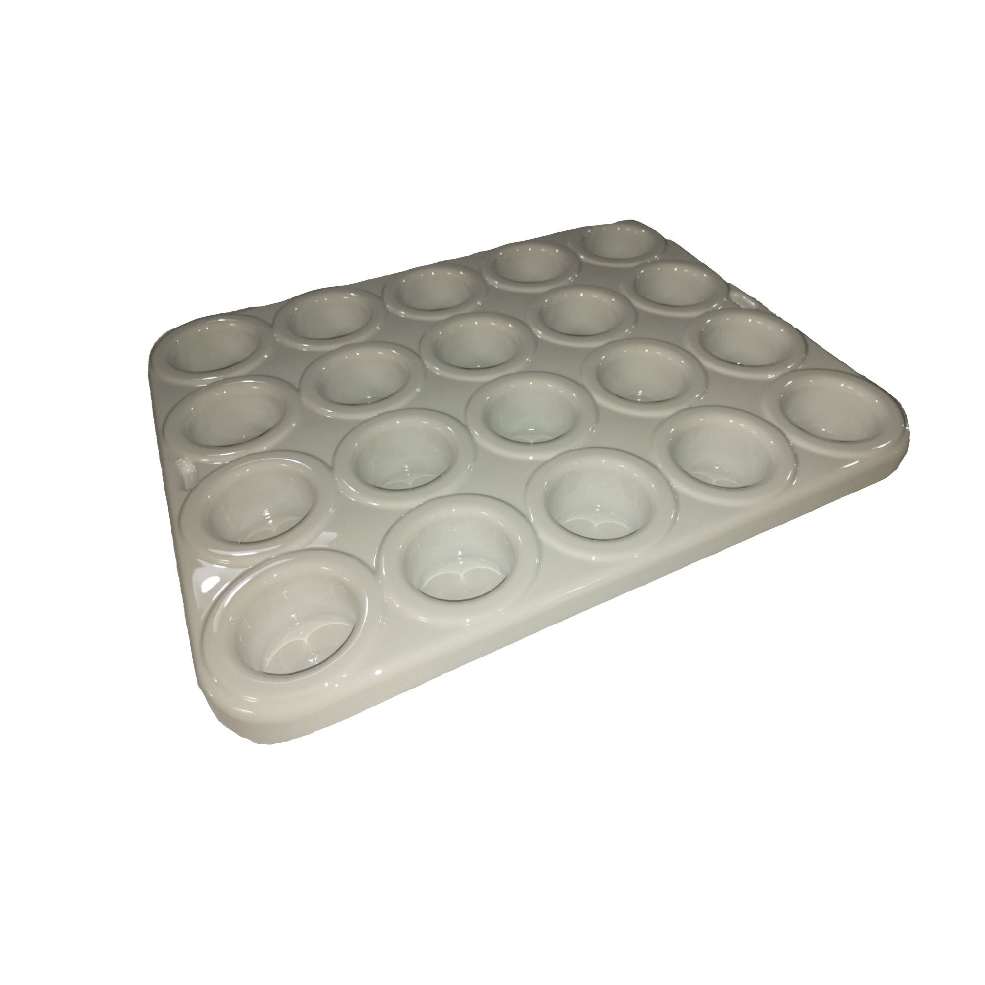 CAPACIDAD: 20 VASOS. DIAMETRO DE LA BOCA 66 MM - DIAMETRO DE LA BASE 55MM -PROFUNDIDAD 45MM